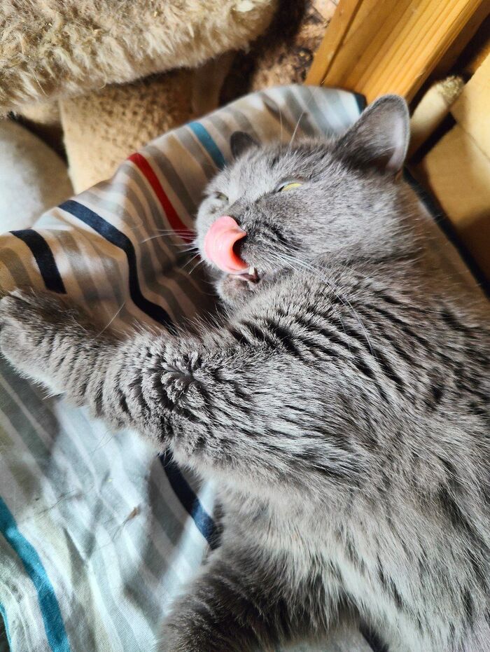 Я понимаю, что это на нервной почве, поэтому в еду ему добавляется успокоительное "кот-баюн", но какого-то значительного эффекта лично я не наблюдаю. Валериана его также не интересует, у нас когтеточка кошкина обильно ей посыпана, и она прямо любит на ней лежать, мейнкун же просто ходит мимо.