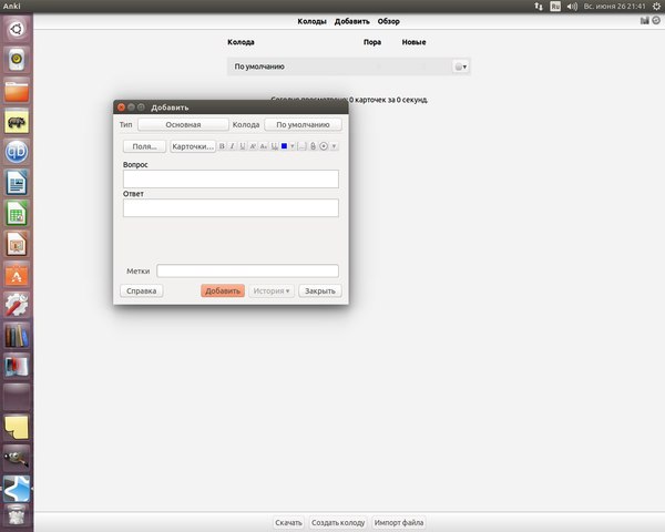 Вбила я запрос с гугл, перешла по первой ссылке и скачала приложение. Сразу хочу отметить просто огромнейший плюс этого приложения: кроссплатформенность, ибо я сижу на Ubuntu и довольно-таки часто программы для моей ОС не предусмотрены. Так, Анки скачала и установила. Сразу он мне предлагает выбрать язык интерфейса