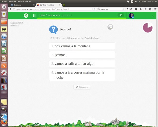 Да, я выбрала испанский, потому что я его не знаю и никогда не учила. И хотелось посмотреть глазами ничего незнающего человека. Там ещё нужно было выбрать уровень: Beginer, Intermediate, Advanced. Ясен-красен Бегинер.