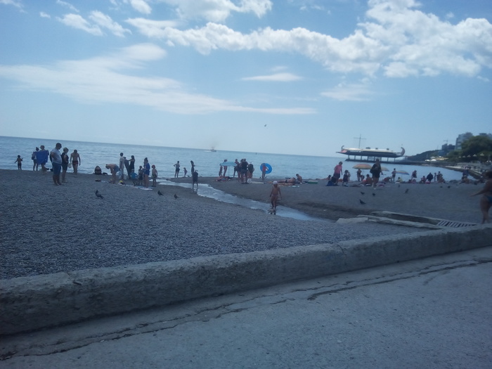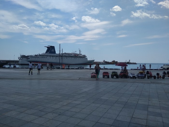 Набережная Ялты создала двойственное впечатление. Горы от которых трудно оторвать взгляд, а остальное серость и уныние. Несмотря на яркое солнце. Удивилась храбрости некоторых облюбовавших кусочек суши на набережной перед морем и используемым под пляж. Хотя место далеко от идеального для этой цели. Люди удивляют, да.
