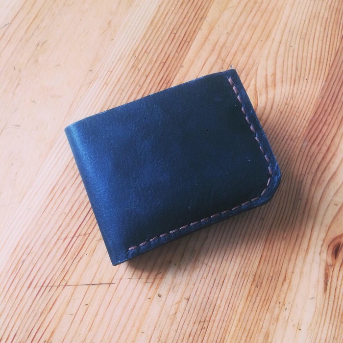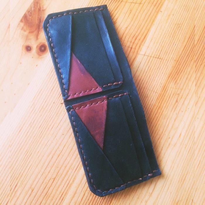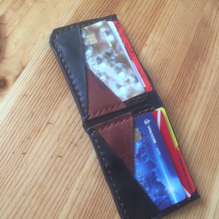 Кроил из обрезков, и в качестве эксперимента, поэтому местами есть кривизна (жопно было мне тогда тратить нормальную кожу на какой то бифолд :D)