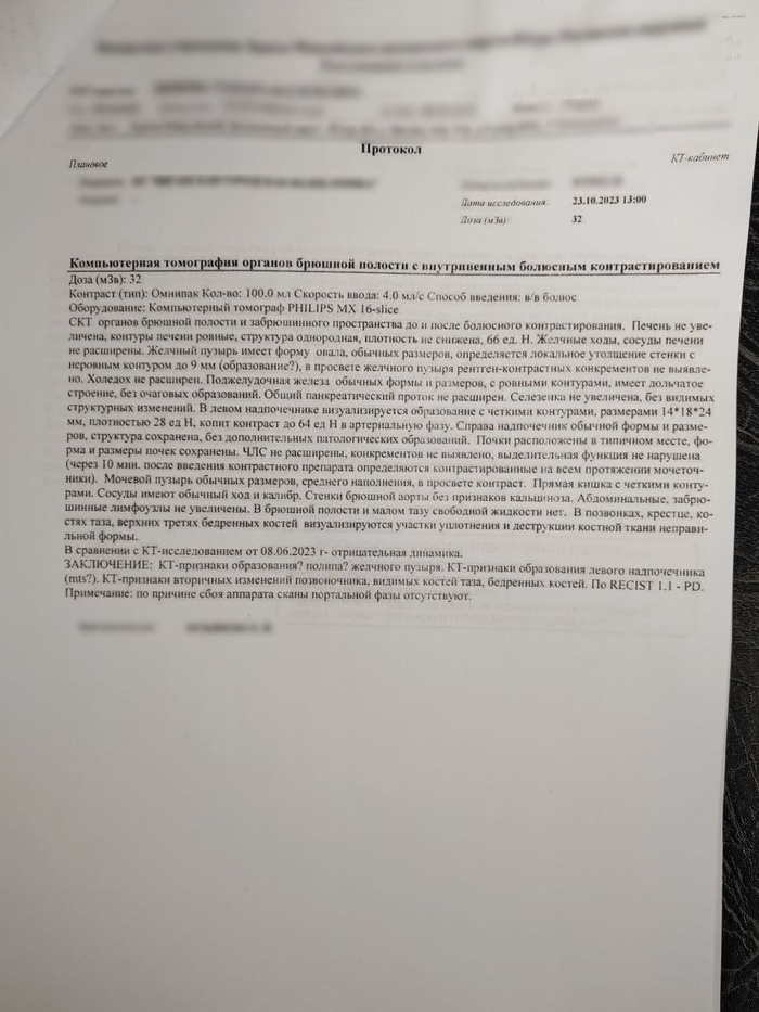 Свежее заключение онколога на основании которого маму госпитализировали в паллиативное отделение: