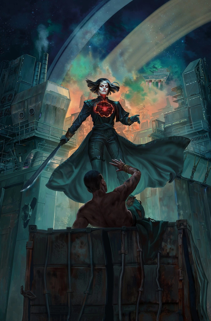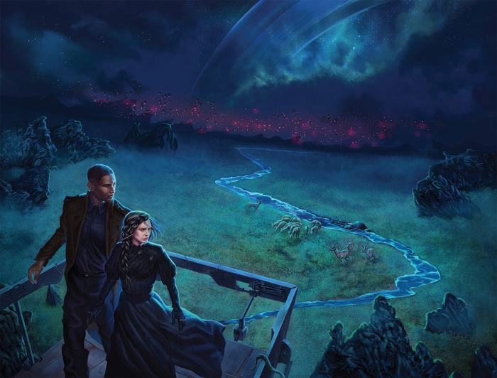 Странник – это сердце и душа романа. Он не типичный герой, а сломленный, уставший от постоянной погони и до смерти напуганный человек, несущий на себе груз трагедии. Его прошлое, как и тайна его личности, раскрывается постепенно, через намеки и воспоминания, и с каждым новым слоем понимаешь всю глубину его боли. Дабы избежать спойлеров я не буду здесь называть его настоящего имени, намекну лишь, что он был второстепенным персонажем в «Архиве Буресвета». Его путешествие по мирам – это путь от бегства от своей судьбы к её повторному принятию. Для нового читателя Странник – просто интересный многослойный персонаж. Для фаната Сандерсона – это встреча со старым другом, изменившимся до неузнаваемости. Если поначалу Странник предстает перед нами в роли этакого волка-одиночки и прожженного циника, то постепенно превращается в самого настоящего героя, готового пожертвовать собой ради других. И эволюция эта прописана очень достоверно.