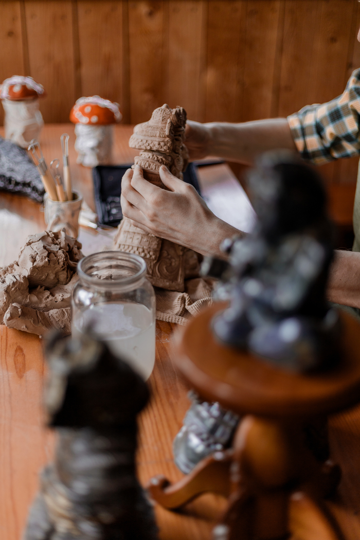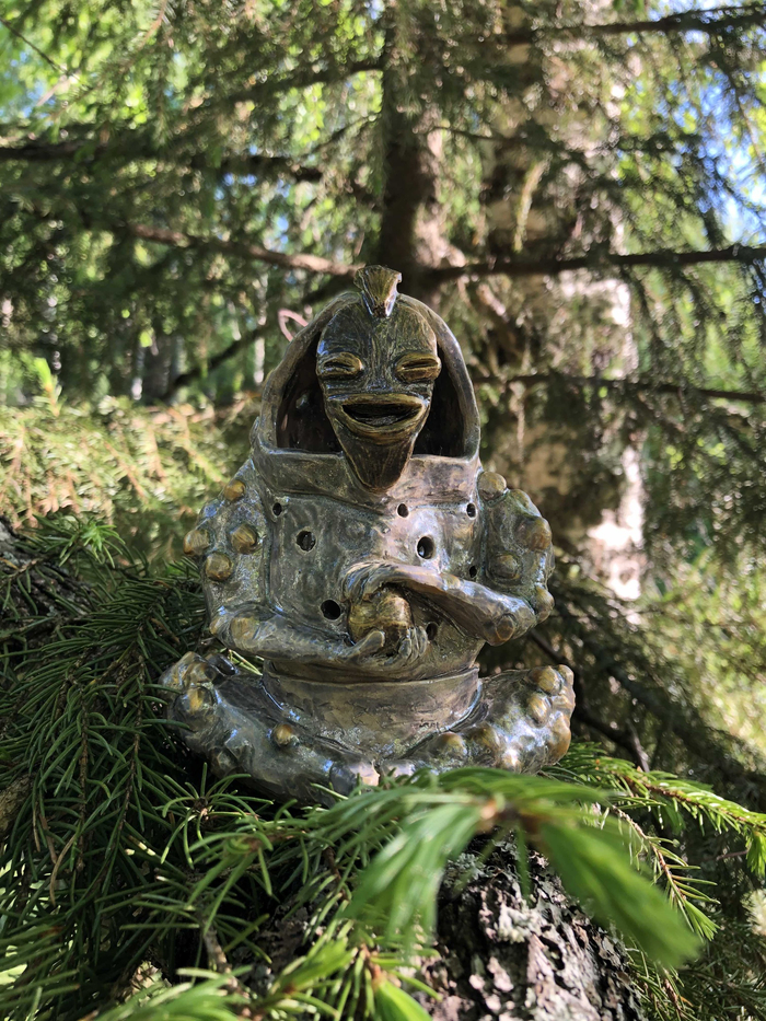 Для "4ceramics" мы подготовили целую коллекцию: Лешины керамические скульптуры самураев, изящные птицевидные подвески и подсвечники-хранители для благовоний, вдохновленные Уральскими лесными богами.