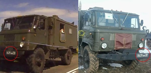 Слева грузовик из конвоя с номером 0639 AH 50. Справа тот же грузовик.