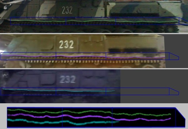 Момент три – поскольку бук был прифотошоплен с использованием инструмента «прозрачность» для придания ему вида, будто его сняли через стекло, через него частично просвечивается оригинал. Это, блядь, оливковый танк с башней, смотрящей назад. Видно как силуэт, неподдавшийся шакалам, так и оливковый оттенок на оригинале.