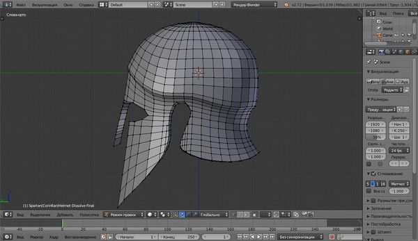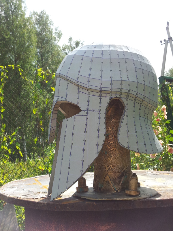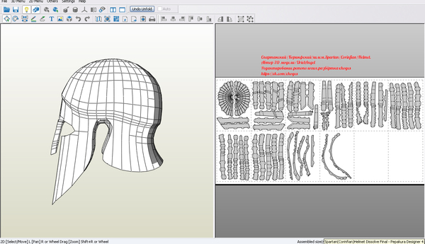 Началось с того что мне в руки попалась авторская 3D модель Casque_Spartiate автора UrielAngel.Модель очень необычная и несмотря на почти классические очертания это скорее просто его фантазия.Изначально шлем был высоко полигональным ,я немного отредактировал его ,сделал ретопологию и развернул в Pepakura Designer.