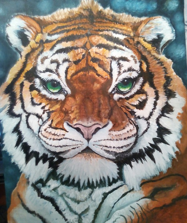 Бенгальский тигр. Масло 50×63. Ну как, ребят, тигр получился? Очень интересно, что скажете.. )) Сейчас смотрю, думаю, усы - то ведь надо было добавить! Ну попозже ещё с усами загружу. А может и не надо усы. Или незаконченно смотрится?