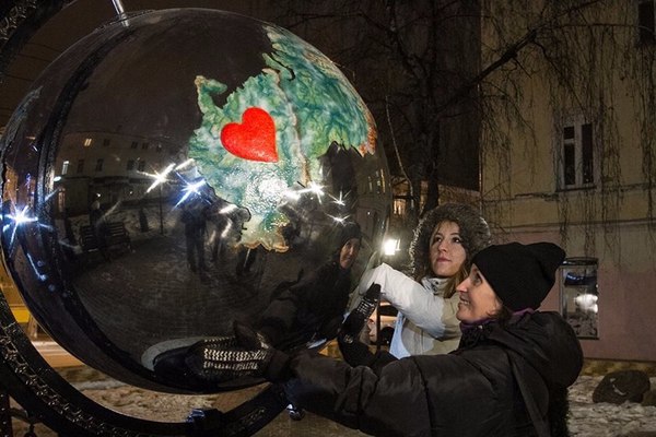 Возле дома номер 96 на улице Ленина в центре нового сквера молодоженов в Калуге появился очередной необычный арт-объект. Небольшой круглый постамент украсил сверкающий глобус, на котором ярким красным сердцем обозначена Калуга.