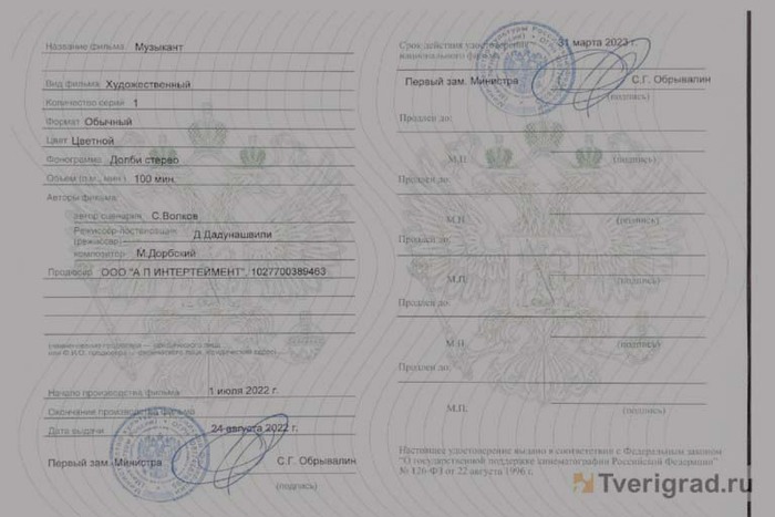 Также порталу Tverigrad.ru удалось добыть прокатное удостоверение фильма, так что теперь можно не переживать.