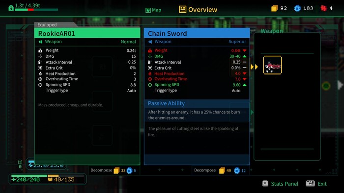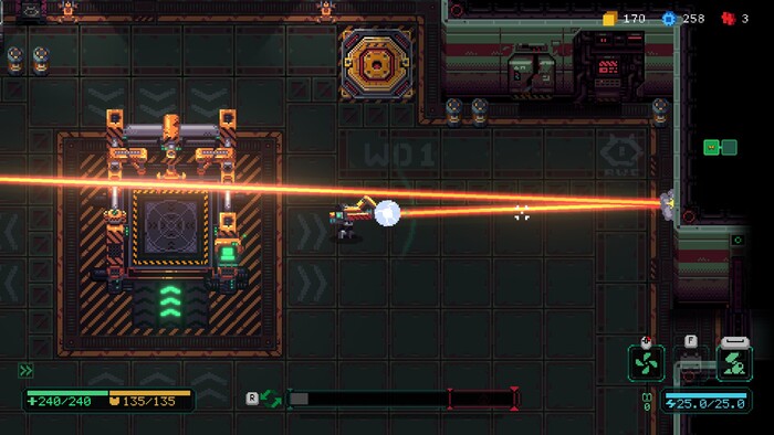 Казалось бы, уже достаточно, но и остальные параметры вмешиваются в дело: у персонажа есть энергия, для которой нужен реактор-тело покруче, пушки вместо перезарядки перегреваются – нанося урон владельцу, да, можно стрелять в перегреве – и буквально сгореть в бою.