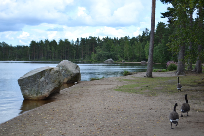 Постепенно становится всё теплее. Вот и граница: добро пожаловать в солнечную Финляндию! Мы едем и едем, Аня наконец расслабилась, улыбается тёплому солнцу. Сворачиваю на берег большого лесного озера с песчаными и безлюдными берегами. Мы пытаемся искупаться голышом, но озеро оказывается очень мелким, чуть выше колена. Зато вода такая теплая! Жизнерадостно плещемся на мелководье, долго вытираемся, вытряхиваем из одежды песок и, освежённые, собираемся в дорогу.
