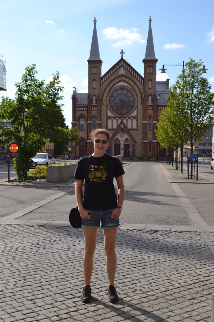 Ближе к вечеру мы решаем оставить прибытие в Стокгольм на завтра и заночевать в городе Ёвле. После всех приютивших нас таёжных посёлков это первый настоящий большой город: многоэтажные каменные дома, какие-то замки, башни, памятники. Мы гуляем по центру, проходим через большой парк, по мосту над быстрой горной рекой. Между кустами по газону шныряют вольные декоративные кролики, по соседним улицам ползают великолепные американские дредноуты. Один из вариантов рая на Земле.