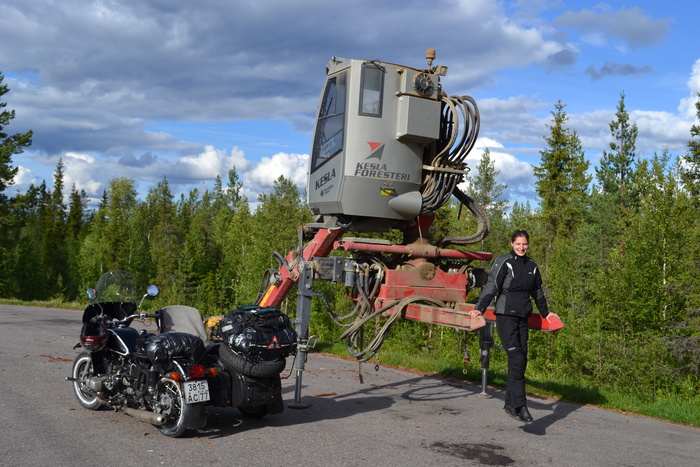 С шоссе сворачивает мотоцикл с голландским номером и двумя мужчинами в дождевиках и рваных больничных бахилах, по возрасту байкеры могли бы быть отцом и взрослым сыном. Старший внимательно обходит вокруг нашу Ретру, рассматривает номерной знак и внезапно обращается ко мне на хорошем русском. Рассказываем друг другу о маршрутах и планах. Голландцы говорят, что ехали нам навстречу несколько часов под дождём, и я сразу же впадаю в панику, предлагаю Ане заселиться в гостиницу и никуда больше сегодня не ехать.