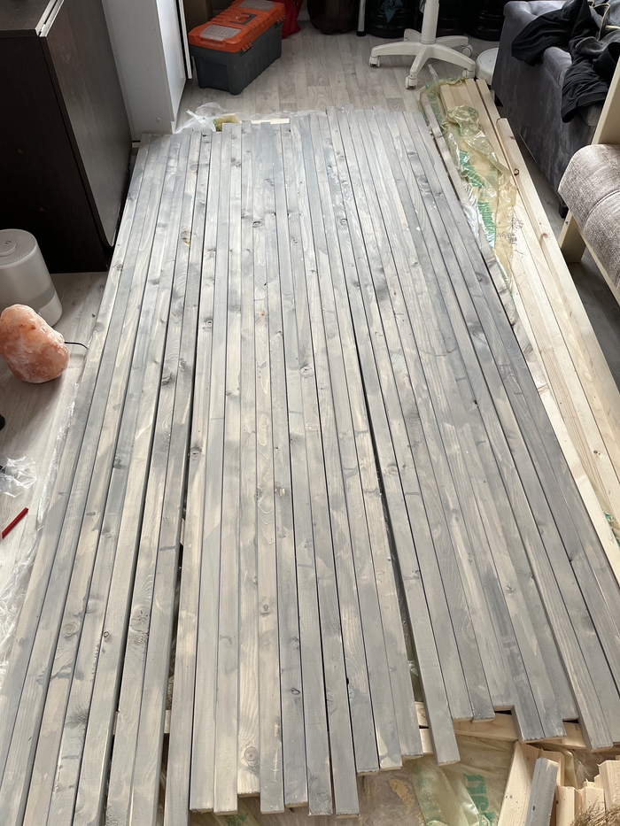 Взял серую краску акриловую и чуть чуть затонировал прям слегка,сверху прошелся лаком цвет сосны. Получилось вот так