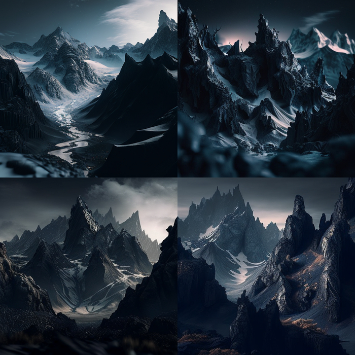 С самой черной стеной вышло лучше. Первое превью получилось красивым, но мне хотелось, чтобы горы не прерывались. Чтобы не было между ними прохода.