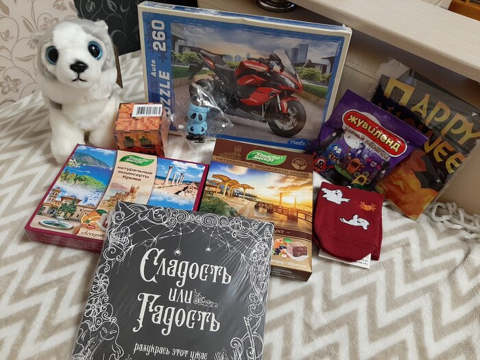 Дальше мой Тайный Санта попал еще раз в точку и подарил пазлы с изображением спортбайка, даже угадал с цветом, сразу нахлынули теплые воспоминания прошедшего лета.