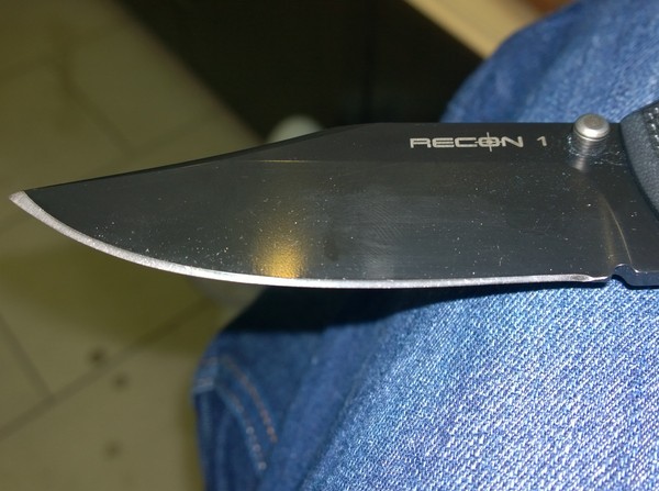 Нож Колд Стил Рекон 1, переточка угла по 20 на сторону. Проход 5 разными камнями, доводка на пасте.
