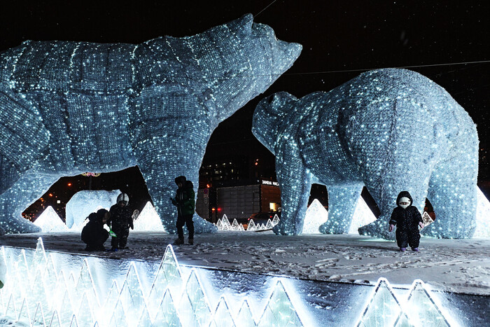 Световая инсталляция «Полярные медведи» у Ростокинского акведука