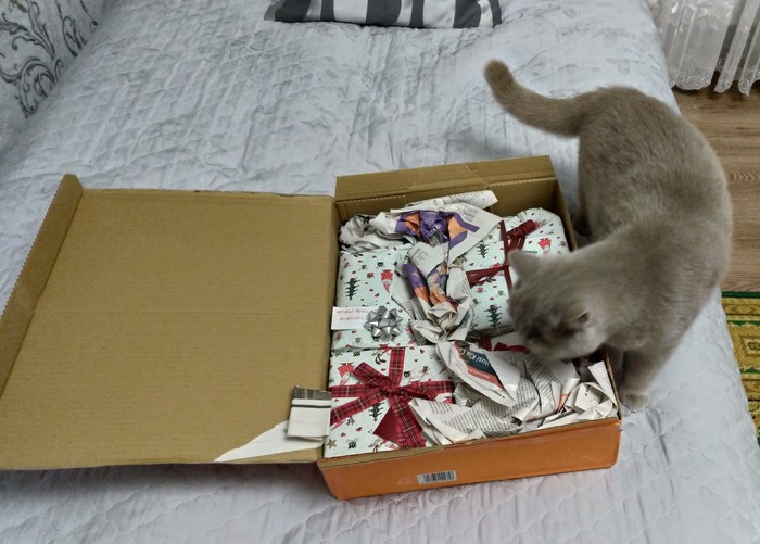 особенно кошка от коробки)