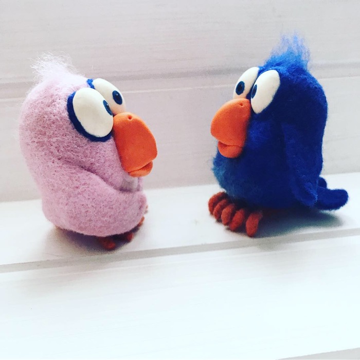 Всем привет, в прошлом посте я показала синюю птичку, из мультика For the Birds, так вот, чтоб ей не было грустно)) я сделала друга. Знакомьтесь - Это Голый, друг Синего, он потерял все оперение на почве вредности )) и очень стесняется этого, даже прикрывает что-то)))