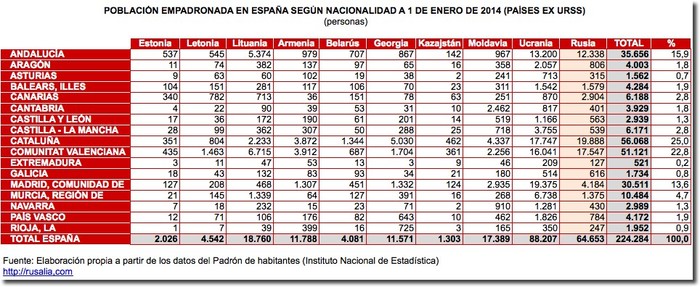 Согласно данным за последние годы, собранные Национальным Институтом Статистики Испании (INE) и Министерством Занятости и Социального Страхования, опубликованных о присутствии русских в Испании, можно понять, что стать единственным уже непросто.
