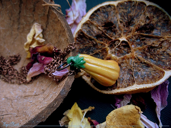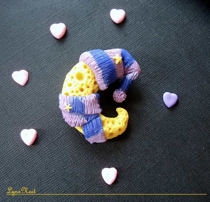 Слепила кучу ужастиков, и тут - Луна. И так захотелось сказки, что получился сырный месяц во вполне осеннем прикиде) /брошь/