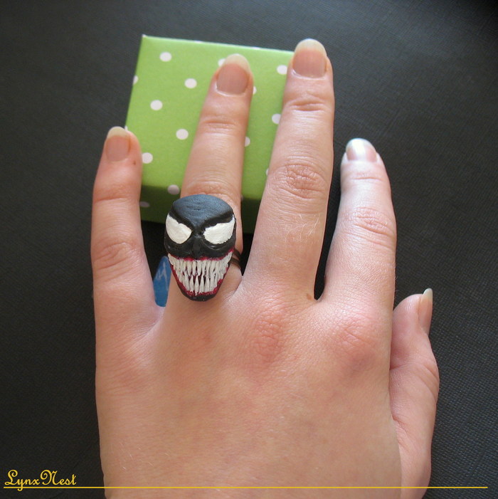 И сначала я думала про очередную черепушку. Потом сделала печатку с пером, но не нашла светлую основу под кольцо, и в итоге получилось как-то так.