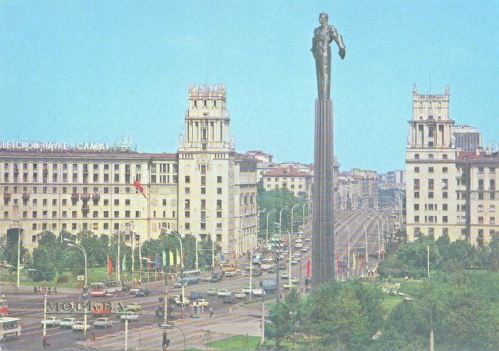 3) Москва, площадь Гагарина, 1985 (лозунг: Советской науке - слава!)