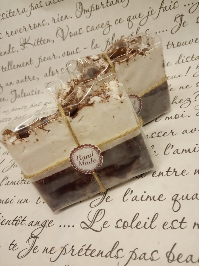 1. Мыло "Шоколадный тортик". В составе масло какао, кокосовое масло, витамин Е, масло Ши.