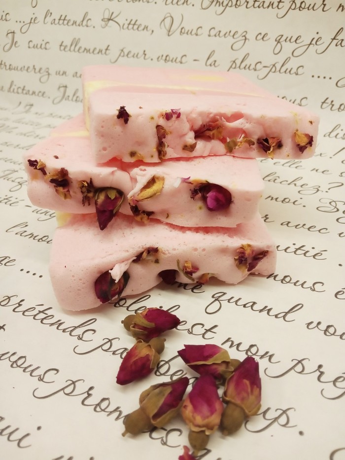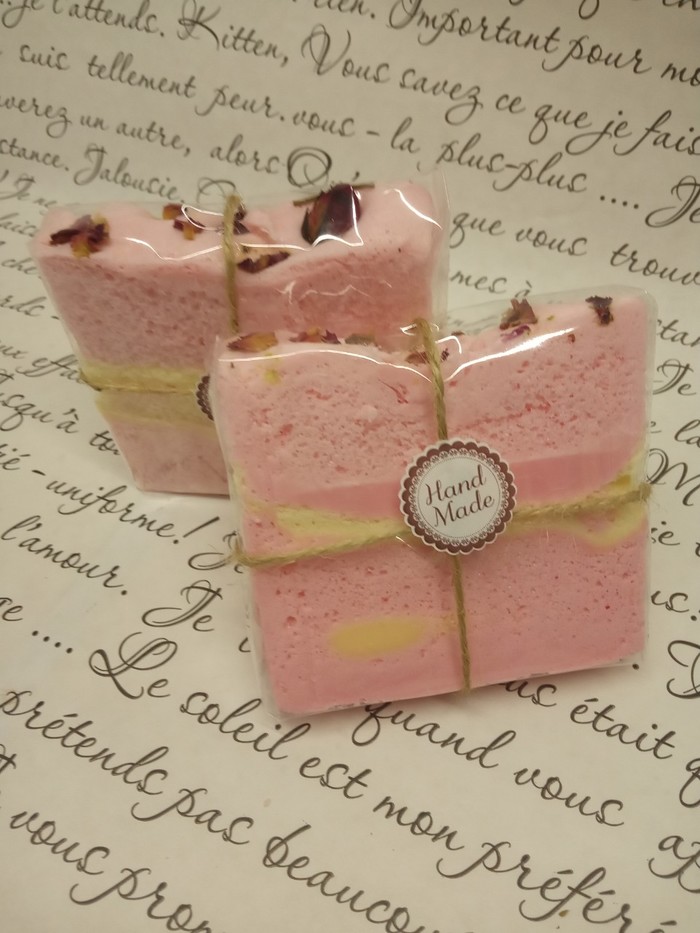 2. Мыло "Персиковая фантазия". Опять же, в составе кокосовое масло, витамин Е, масло персиковых косточек, масло Ши. Пахнет персиком и розой.