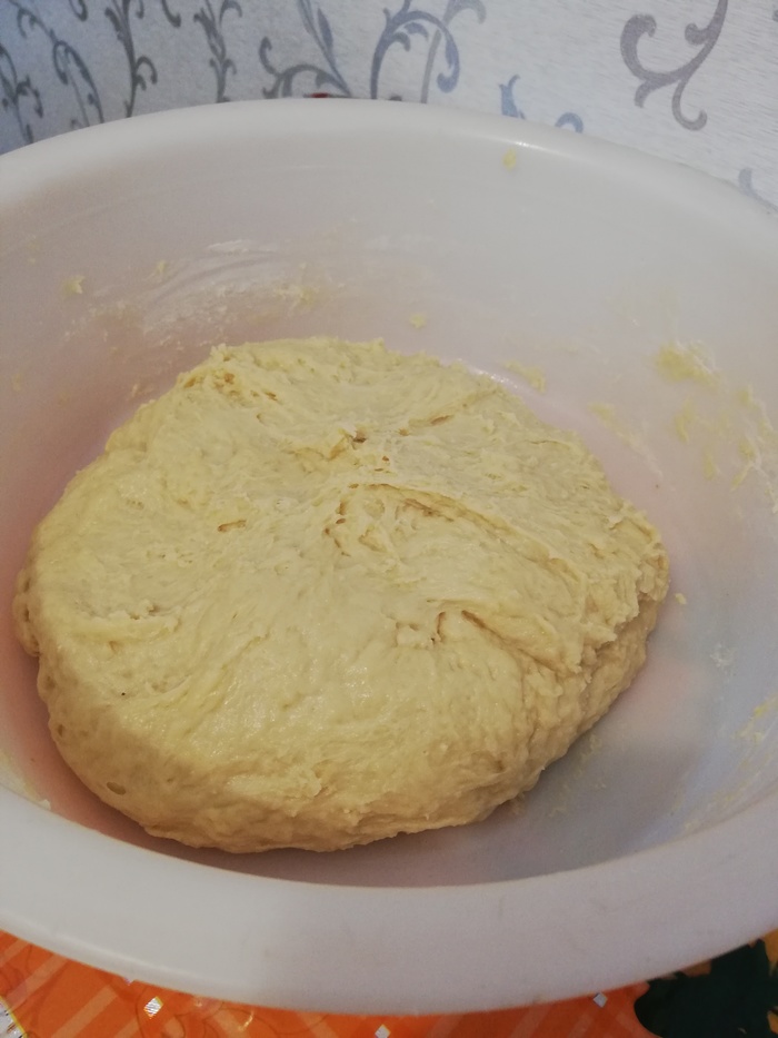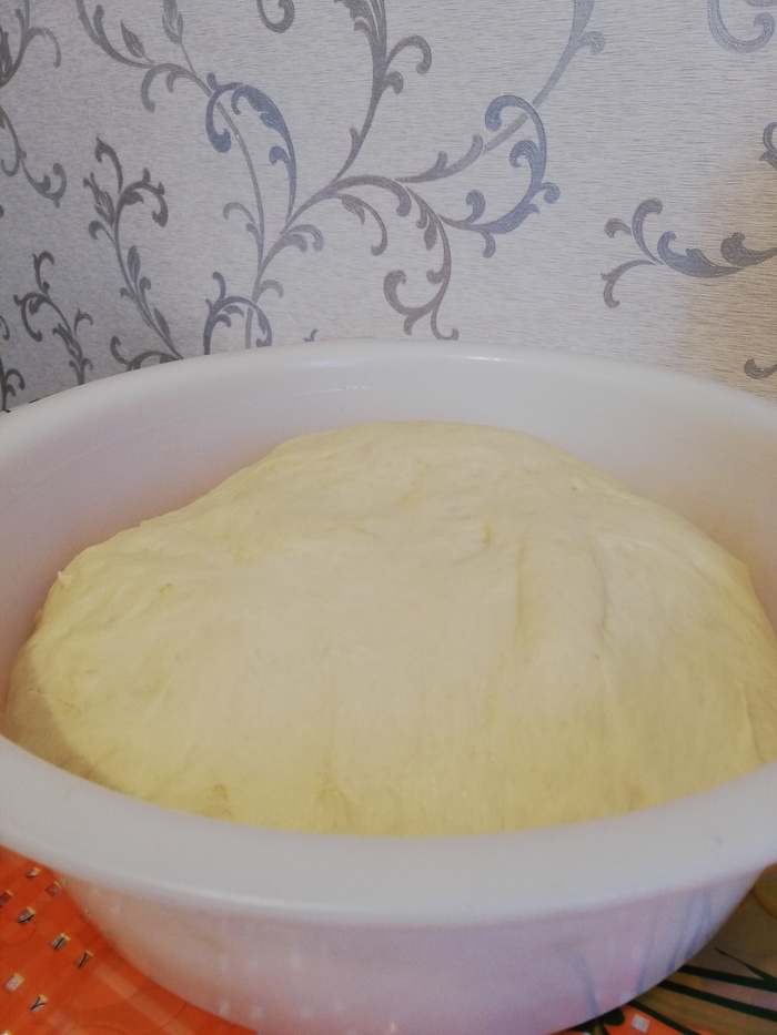 Смазываем миску растительным маслом, накрываем и убираем в тепло. Даём тесту подойти и обминаем. Затем оно ещё раз поднимется и можно разделывать наши булочки.