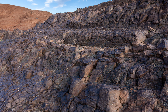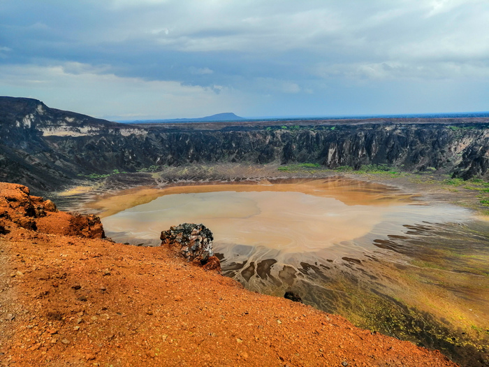 Кратер вулканический, по краям кальдеры - обнажения лавы.