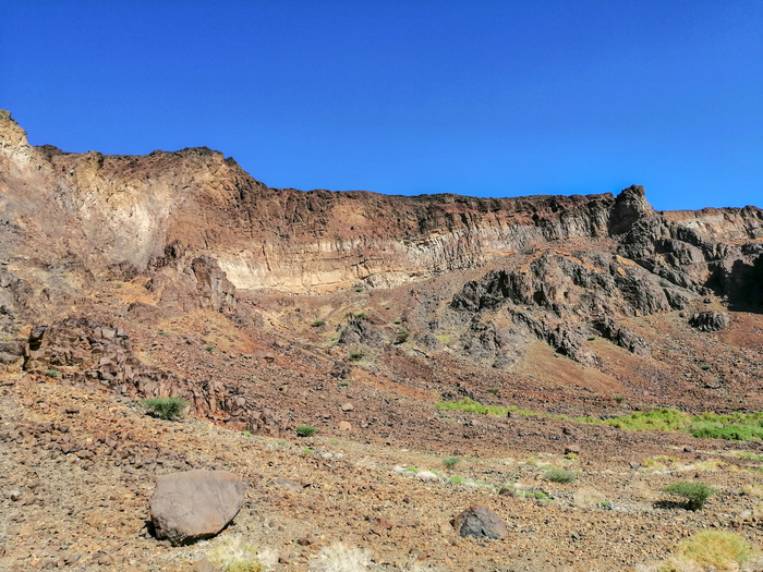 В Саудовской Аравии куча всяких природных достопримечательностей. Проблема, однако, та же, что и в Австралии, - далеко добираться. В этот раз с товарищем поехали на кратер Аль-Вааба, примерно 750 км строго на запад от места постоянной дислокации. Там была забита стрелка с соотечественниками, которые выдвигались к объекту со стороны Джедды. По дороге нас накрыл изрядный ливень, на подъезде к кратеру почти что переправлялись вплавь. Далее идут фотки самого кратера, снятые на мой неприлично звучащий смартфон )