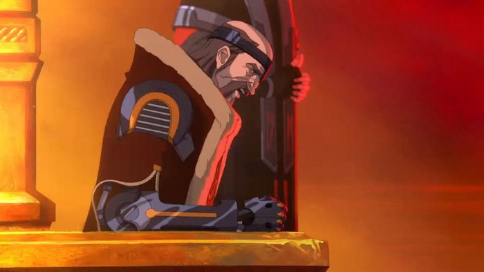 И если с сюжетом всё более-менее понятно, то с передачей движения не совсем всё хорошо. Здесь мы не увидим плавности быстрых движений, как в советском «Маугли» и северокорейском «Юном полководце». Переходы камеры и 20 fps в экшен-сценах просто отвлекают от действительно прорисованных кадров. Иногда композиция перестаёт быть динамичной, задний фон отделяется от происходящего на экране. Боевые сцены интересные, взрывы выглядят хорошо. Но когда действия происходили на рынке скорость была быстрая, что не давало насладиться миром города, а когда происходили бои возникала некая заторможенность. Ну хоть можно разобрать надписи на воротах двора главного героя: «Лобызай х*р в*родок». К счастью мата в мультфильме есть, а есть только грубая лексика: "самка собаки", «м*день». Хотя диалоги не особо запоминаются, какие-то обывательские, не как у роботов, рассказывающих про жизнь лоссиян (Скорее всего аллегория на капитализм в США) из мультиков «Анима-схема». Надеемся, что у режиссера анимации Александра Кречмана получится поработать над доработками.