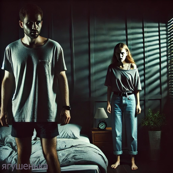 Муж, одетый в семейники, несмотря на не особо позднее время, выскочил из спальни с таким испуганным выражением лица, будто она - злобный вампир, без приглашения ворвавшийся в квартиру, чтобы впиться в не особо аппетитную с виду мужскою шею.