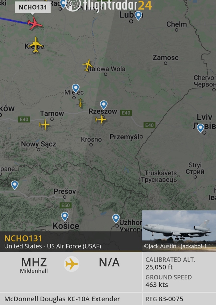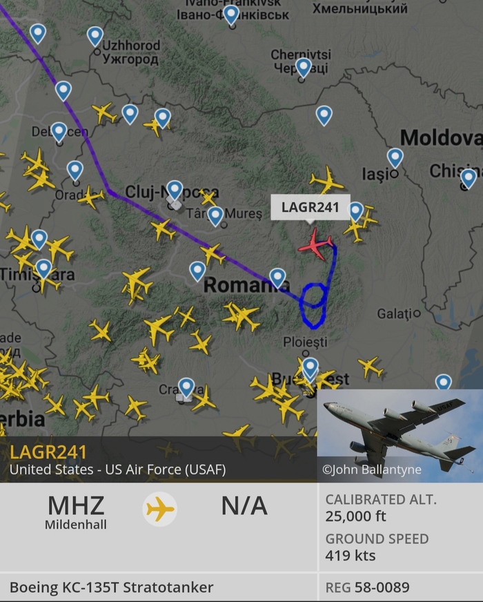 А в это время Boeing KC-135 Stratotanker американский реактивный четырёхдвигательный специализированный многофункциональный военно-транспортный самолёт/самолёт-заправщик рядышком круги наворачивает.