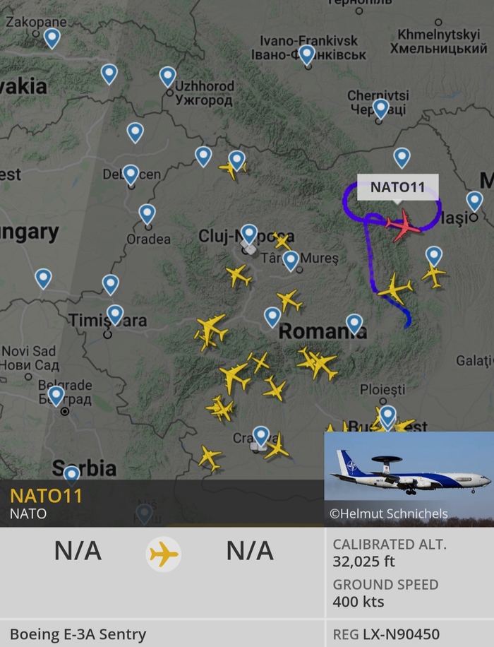 Boeing E-3 Sentry - американский самолёт дальнего радиолокационного обнаружения, также дежурит рядом.