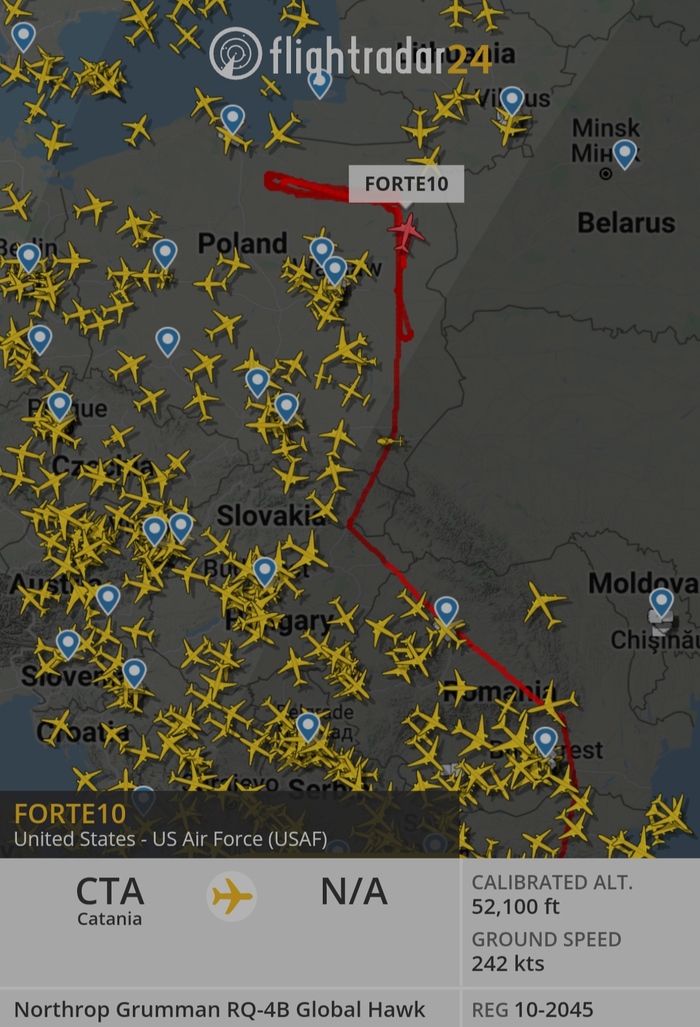 Ну, и как же без него... RQ-4 Global Hawk - американский стратегический разведывательный беспилотный летательный аппарат. Также летает вдоль границы.