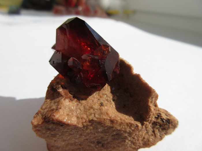 Эвдиалит, он же лопарская кровь. Сфотографировать адекватно очень сложно, кристаллы действительно выглядят, как капли крови.