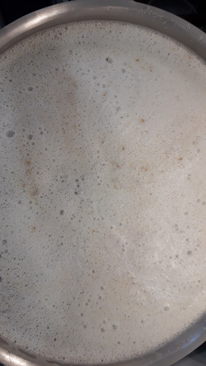 10 часов. Засыпал солод. Затор покрывает шапка ароматной пены, и сладкий приятный запах солода разлетается по кухне. Температура первой паузы и можно оставить затор на 50 минут, периодически помешивая.