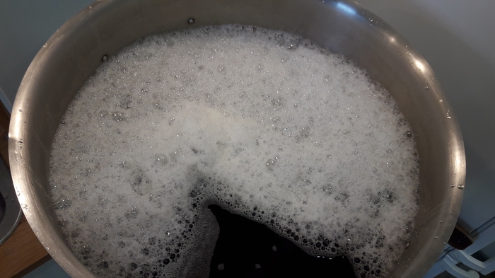 19:10. Два ведра по 30-32 литра. Что-то слишком много пены в этот раз. Бывает пена, но не настолько много. Останется засыпать дрожжей, поставить гидрозатвор и вперед.
