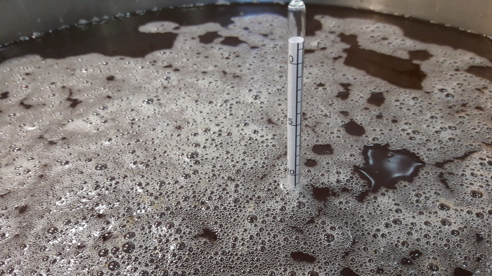 Замеряем плотность (разумеется стирильным ареометром). 11,5%- неплохо, неплохо. Это соответствует примерно 5,6% градусам в конечном продукте. Слив что-то тоже не запечатлён.