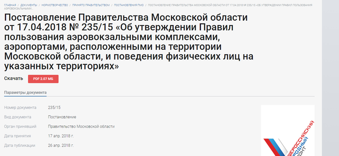 Московская областная дума приняла закон, позволяющий штрафовать за нарушение правил поведения в аэропортах. Эти правила будут действовать в Домодедово, Шереметьево и Жуковском. На аэропорт Внуково запреты не распространяются.