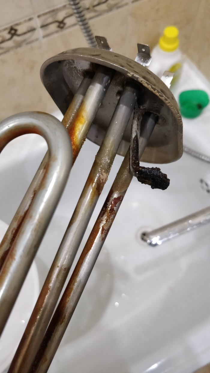 Так вот, магниевый анод – это такая штука, которая не позволяет гнить металлическим элементам внутри бака от электрохимической коррозии. Таким как ТЭН, седло активного блока, корпус термостата, да и что греха таить – сам бак, хоть он и из нержавеющей стали. То есть, после того, как ваш магниевый анод внутри бака разложится до конца, электрохимической коррозии понадобится другая еда и она примется «жрать» то, что менее стойко к ней. В моем случае этой «едой» стал бак из нержавеющей стали.