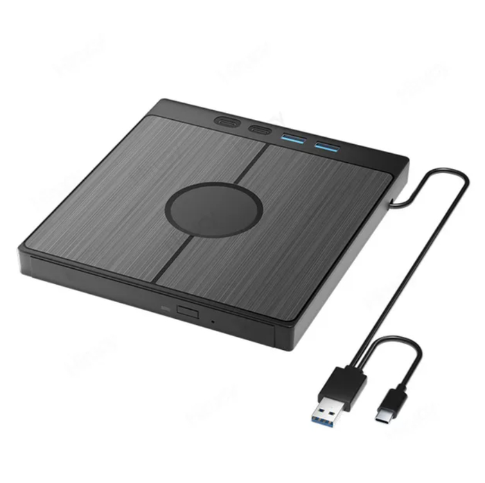 Подходит для чтения и записи CD/DVD-дисков. Имеет дополнительные разъёмы USB, кардридеры и выходы для подключения аксессуаров. Компактный и лёгкий корпус удобен для переноски. Совместим с Windows и Mac OS.
