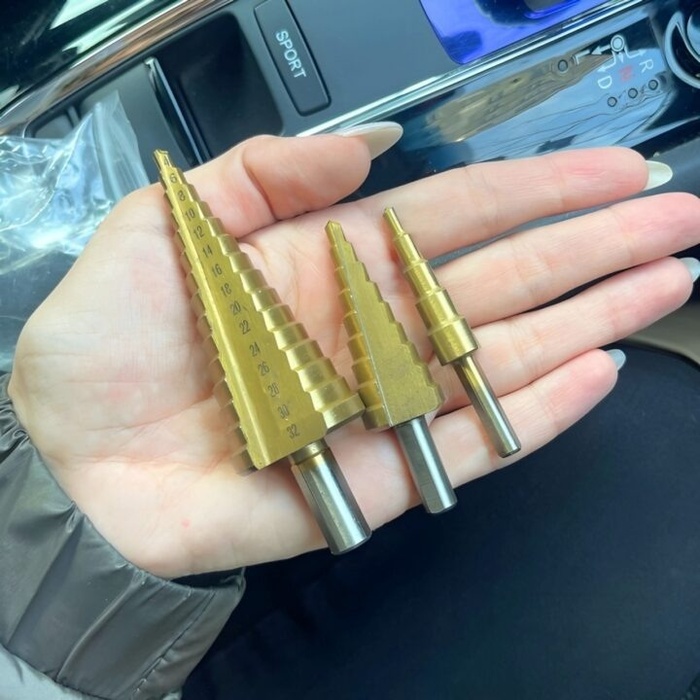 Набор включает сверла с диаметрами 4-12 мм, 4-20 мм и 4-32 мм. Каждое сверло имеет четкие маркировки диаметров и шагов. Работать можно с различными инструментами, такими как ручная дрель, шуруповерт или сверлильный станок. Для лучшей работы рекомендуется использовать водяное охлаждение.