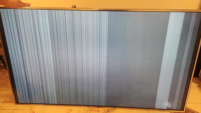 недолго посмотрев ролики на ютубе, я примерно начинаю понимать, что здесь произошло. И да, так и оказалось, поврежден один из шлейфов, на второй фотографии с включенным TV видно, как искрит поврежденный участок (маленькая белая точка)