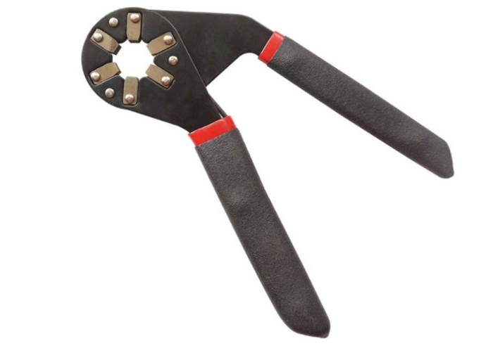 Инструмент оснащен фиксированными размерами и пружинным механизмом, что позволяет эффективно и аккуратно удалять изоляцию, не повреждая токоведущие жилы, делая процесс работы с проводами проще и безопаснее.