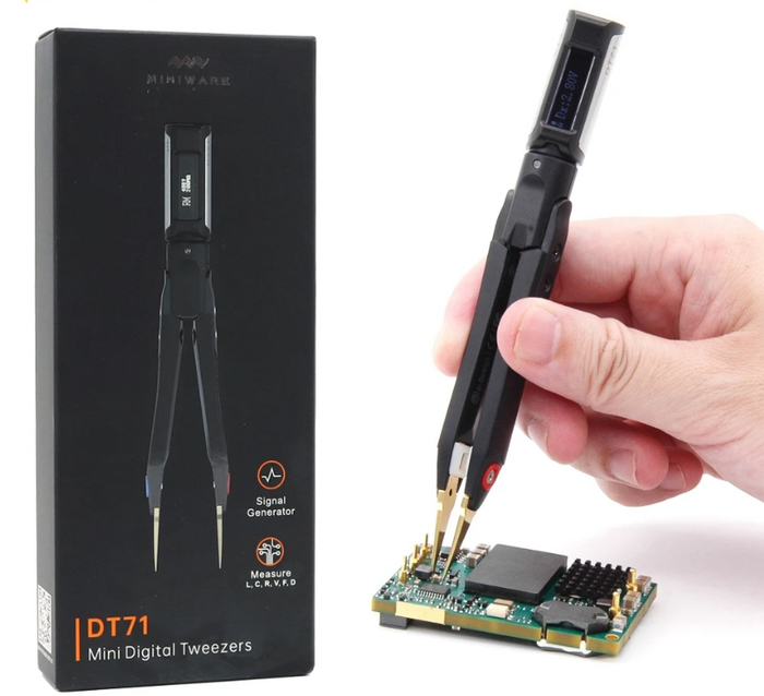 Измерительный пинцет Miniware DT71 Mini Digital Tweezers — это цифровой инструмент, сочетающий функции мультиметра и генератора сигналов.